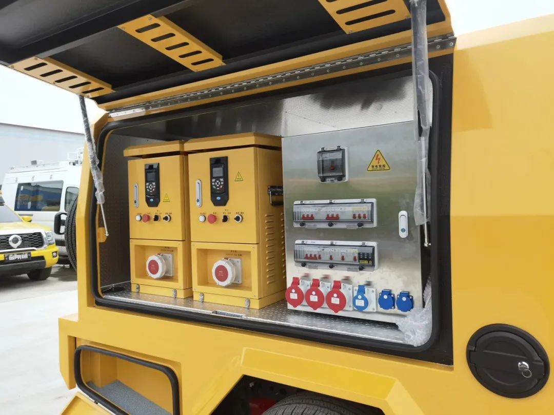 取力發(fā)電: 直接利用車輛底盤發(fā)動機動力(怠速/低轉(zhuǎn)速即可),提供 30kW 持續(xù)穩(wěn)定交流電。相比獨立發(fā)電機,更省油,滿足設(shè)備緊急用電需求。