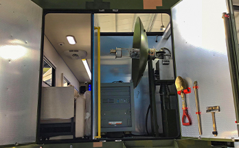 該衛(wèi)星通信指揮車配備衛(wèi)星通信、地面無線通信等多種方式,各通信方式互為補(bǔ)充、備份, 保證在任何情況下通信不中斷,為順利完成各項(xiàng)任務(wù)提供可靠的保障。