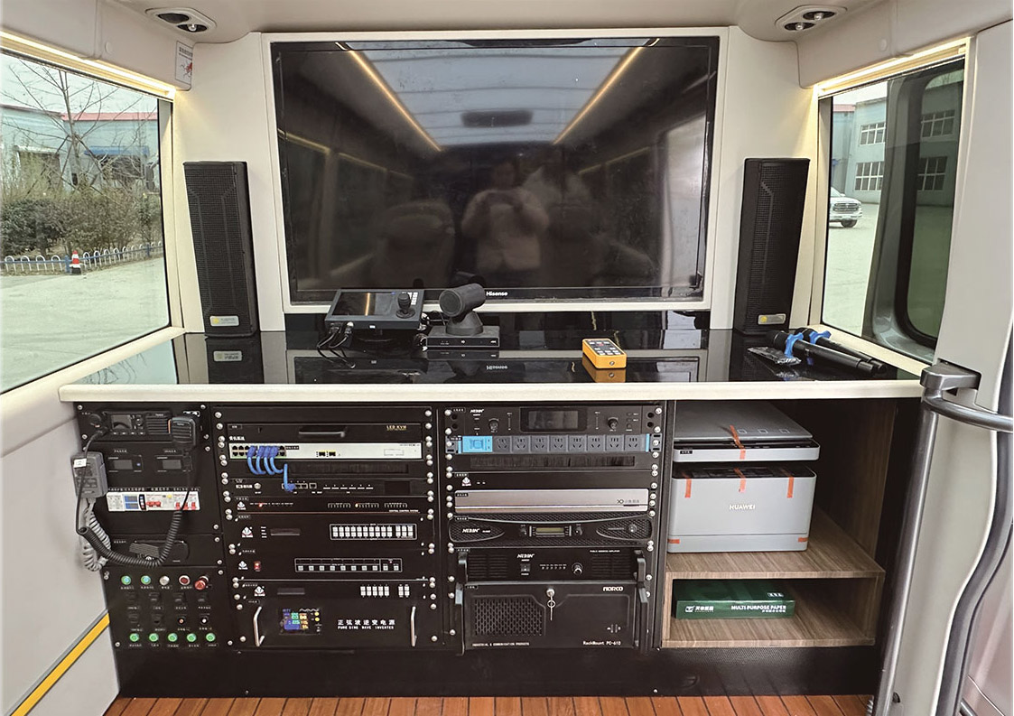 九瑞多功能應(yīng)急指揮車具備通信傳輸、信息采集、信息網(wǎng)絡(luò)、指揮應(yīng)用、綜合保障等系統(tǒng)功能??蓪崿F(xiàn)應(yīng)急指揮現(xiàn)場和后端指揮中心音視頻互聯(lián)互通,鏈接旗下便攜指揮箱、機器人、無人機單兵通信設(shè)備,形成人、車、機、場景智聯(lián)互動,以滿足全場景指揮需要。構(gòu)建以車輛為中心的智能互聯(lián)通信集群,并可作為綜合協(xié)調(diào)多功能指揮中心。