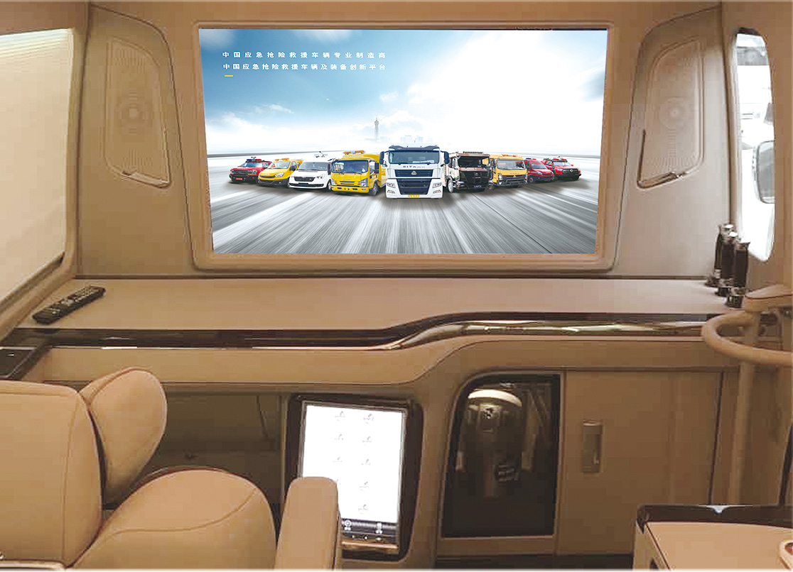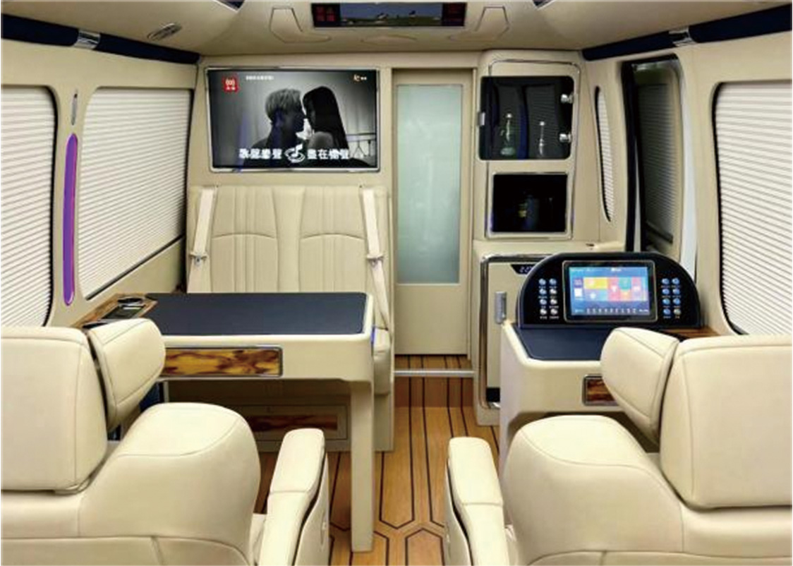 商務(wù)系統(tǒng):車內(nèi)可定制多功能豪華座椅、豪華辦公桌以及秘書桌、冰箱柜、酒柜、床、衛(wèi)生間等。