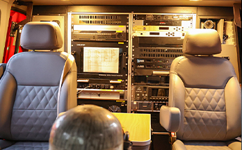 本車功能系統(tǒng),可通過各種通信手段,在災(zāi)害現(xiàn)場建立臨時指揮調(diào)度網(wǎng)絡(luò),滿足便攜式會議終端站的網(wǎng)絡(luò)需求,實現(xiàn)在任意時間、地點與部局指揮中心、總隊指揮中心音視頻的互聯(lián)互通;利用微波圖傳等,將采集到的圖像傳輸至指揮車,通過衛(wèi)星通信系統(tǒng)上傳至總隊指揮中心、部局指揮中心;能通過衛(wèi)星電話與各級指揮部進行語音通信;為現(xiàn)場指揮部提供音視頻、電源、照明等通信保障。